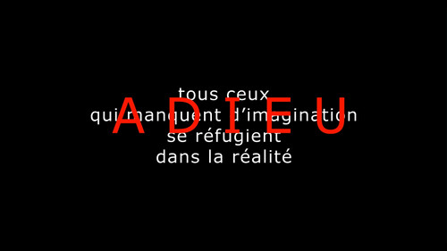 The idea is simple / A married woman and a single man meet / They love, they argue, fists fly / A dog strays between town and country / The seasons pass / The man and woman meet again / The dog finds itself between them / The other is in one, / the one is in the other / and they are three / The former husband shatters everything / A second film begins: / the same as the first, / and yet not / From the human race we pass to metaphor / This ends in barking / and a baby's cries / In the meantime, we will have seen people talking of the demise of the dollar, of truth in mathematics and of the death of a robin." - JLG