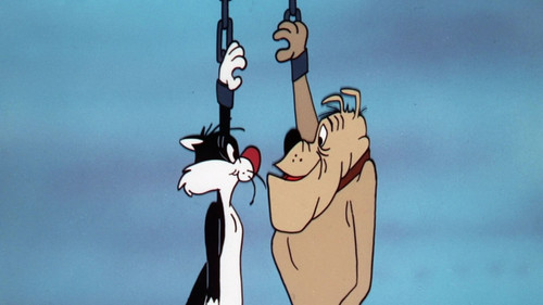 Sylvester Cat and a tough bulldog escape, chained together, from a transport vehicle headed for the city animal pound and make like convicts on the lam.