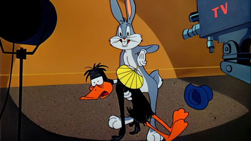 In his Hollywood home Bugs is being interviewed by the Edward R. Murrow TV show "People to People" when Daffy and Elmer show up.