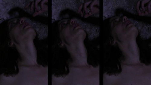 An installation presented on 11 screens featuring nude human figures engaged in cathartic performance.